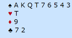 Jeg har ikke fått fatt i meldingene i GILLIS sin kamp, men i alle fall fikk Fuglestad-Sælensminde som N/S spille 5 spar doblet. Det burde blitt -300 om Ø/V tar sine stikk, en god stamp da Ø/V enkelt vinner 5 kløver eller 5 hjerter. Men i 5 spar doblet endte med elleve stikk, +650! Vest må ha håpet på to kløverstikk også om syd (skjulte kort) satt med kløver konge og derfor ikke skiftet til kløver, og så fikk ikke Ø/V noen stikk i den fargen i det hele tatt, syds kløvere forsvant på de røde kongene.
