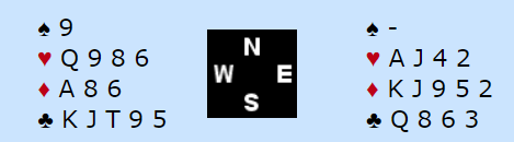 Hjerterutspill mot 4 spar er skivebom, da blir det nok elleve stikk siden østs to rutere forsvinner på hjerteren. Med minorfarge i utspill kan forsvaret ta fire minorstikk med det samme. De kritiske stikkene de må få tak tvert i er imidlertid ruterstikkene, for om det ikke hentes to kløverstikk forsvinner ikke kløveren der øst har femkorts farge.