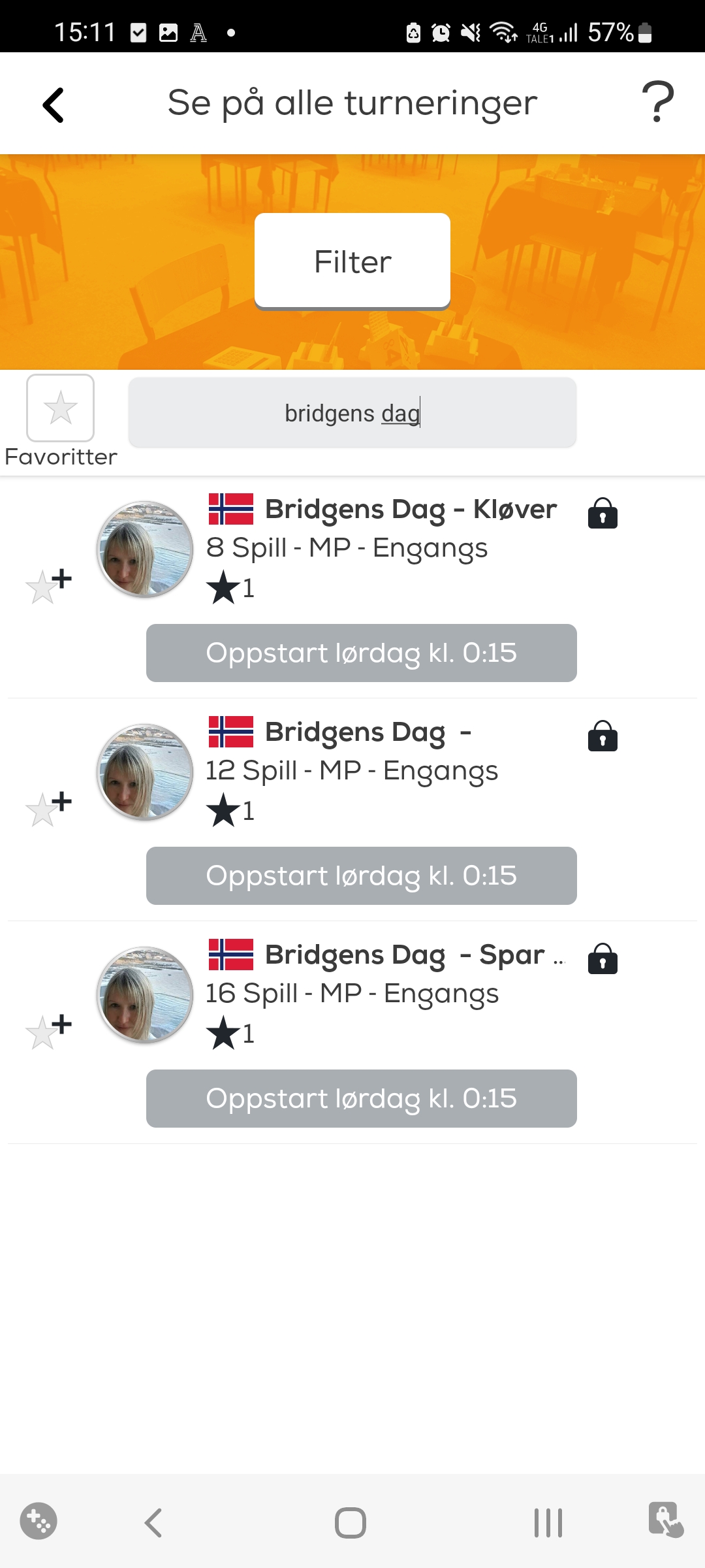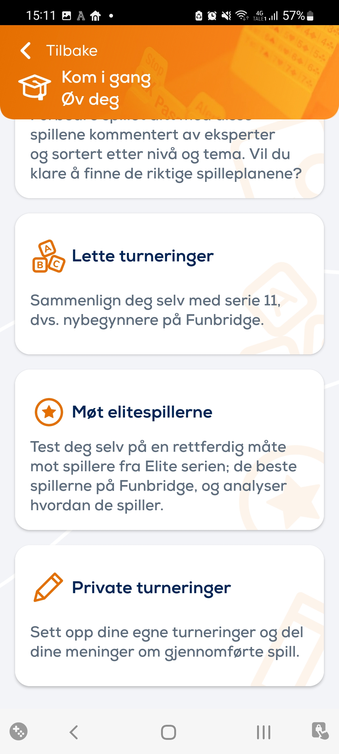 Har du ikke noen å spille med på Bridgens Dag? Ikke fortvil, på Funbridge tilbyr Norsk Bridgeforbund turneringer i tre nivåer hvor du spiller med og mot roboter. Og ikke la deg lure, robotene er bedre enn du tror...