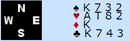 Joda, dette kunne godt blitt bet etter hjerterutspill hvis ikke sitsen var så snill. Men det er en soneutgang, og den avhenger i praksis av at ruteren ordner seg. Liten hjerter i utspill gikk til damen, hjerter tilbake. Spillefører har en stopper i hjerter. Vest valgte å ligge unna i andre hjerterrunde, kanskje i håp om at spillefører skulle tro vest ikke hadde noe inntak, og dermed spille kløver. Men kløver var ikke tema for Nystrøm, han hadde bare åtte stikk selv om spar skulle sitte 3-3, så han måtte satse på ruteren. Da den gikk bra via en finesse og spar for sikkerhets skyld satt 3-3 endte det med hele 11 stikk, +660.