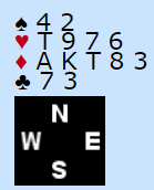 Om grandåpneren har hjerterfarge er dette veldig gode kort. Om han ikke har det må hun si 2NT andre gangen, invitt til utgang. Det er vel ikke så galt med så god ruterfarge som gir godt håp om mange stikk?