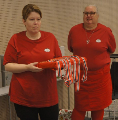 NBF Vestfolds kretsleder Heide Berre Skjæran og nestleder Elisabeth Groseth gjør klar for premieutdelingen