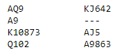 Å ta ut trumfen og så spille for eksempel kløver ess og kløver mot damen gir dårligere odds, og det må dessuten tippes om syd har knekten eller kongen). Men det ville vært riktig spilt om syd hadde hatt både knekten og kongen i fargen.