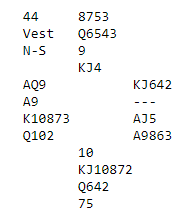 Det er ikke sikkert alle fikk melde i fred her, men tipper at de fleste på syds plass antagelig holdt kjeft i disse soneforholdene. Eller det er selvsagt mulig noen på syds plass doblet overføringsmeldingen 2 hjerter. I så fall kan det hende nord meldte ved noen bord.