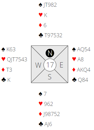 Noen steder spilte vest hjerterkontrakten, og nord spilte ut sin single ruter. Hvis spillefører ikke ser for seg at det kan være singelton tenker han kanskje at det må være fint å ta ruterstikkene og kaste kløveren, så kan hjerterfinessen forsøkes for enda ett overstikk senere. Spillefører vet jo ikke at hjerteren sitter så fint og løses enkelt uten taper. Men spilles mer ruter ramler taket i hodet på spillefører, for nord stjeler andre ruter og spille kløver til syds ess - kun elleve stikk i stedet for det som var mulig, tretten stikk.