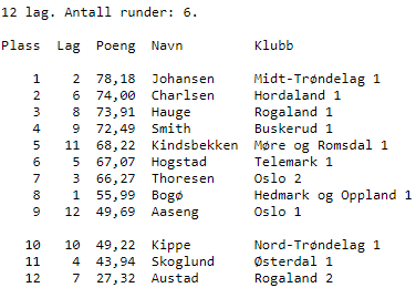 Spiller en flere kvelder med samme makker er det ikke første spillekveld som teller i sammendraget, men den kvelden med best oppnådde resultat.