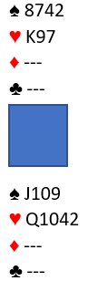 Tror du syd – hvis du tar i betrakting at han tenkte lenge over 4 hjerter – har hjerter konge singel, eller er han renons i hjerter?
