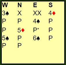 En litt merkelig redobling kan man si (?), men det fikk et heldig utfall. N/S var ikke heldige med å være så aktive, og det endte med at de på en måte hjalp Ø/V til slem. Men den må jo stå for at det er uheldig for N/S.