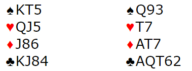 I spill 23 hadde Stig Morten og Bjørn Håkon Bratreit disse kortene: E5 Kkn72 kn95 74 D1097 EK543 KD107 93