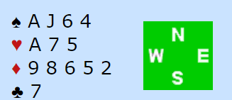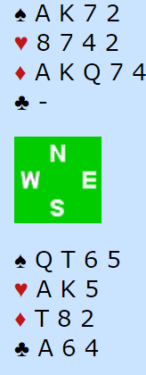 Det bør vel være mulig å finne frem til 6 spar her. Det er faktisk ikke en helt hårreisende 7 spar, men meldes så brutalt hardt må det sitte snilt både i ruter og spar. Så storeslem er alt for hardt.