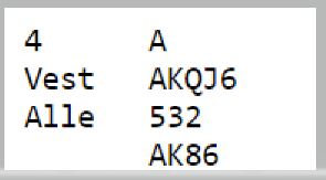 Noen åpner med 2 kløver med slikt, men siden det for de fleste betyr utgangskrav så har en vel ikke helt til det selv om det skal lite til hos syd før det står utgang? Det var mange som derfor åpnet med 1 hjerter. Ved mange av de bordene gikk det pass rundt og nord fikk sikkert litt nerver før blindemann kom ned; står det i utgang?