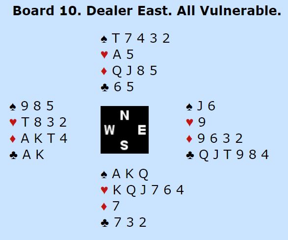 Pluss 490 var altså hele kassa. Å få kun ti stikk i 3NT ville gitt litt over middels, og de som fikk elleve noterte +24 av 33 oppnåelige plusspoeng.