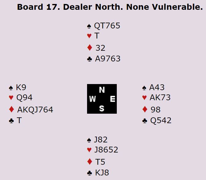 Ruter 6 klemte saften ut av nord. Hvis han valgte å holde på kløver konge måtte han ned på singel spar dame. I så fall forsvinner østs kløver 10, og spillefører får de to siste i spar ved å spille liten som tar med seg den nå single damen. Hvis nord holder to spar må han kaste den siste kløveren sin. I så fall kaster øst spar 2 og tar de to siste med spar konge og kløver 10. Tolv stikk og +690, og det var Kvangraven helt alene om i det som var en vanlig kontrakt selv om det var noen hjerterkontrakter og.
