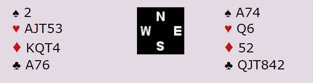 Hvis Ø/V får meldt i fred og finner hjertertilpasningen bør de finne ut at alle essene er på plass, og sannsynligvis også at øst har A-K i ruter (for eks. etter et spørsmål om spesifikk konge) er det ikke vanskelig å se for vest, hvis det er hun som spør, at her er det fort tretten stikk om majorfargene gir full uttelling. Alt i alt er det ganske brukbare sjanser for tretten stikk, men 6 hjerter er egentlig nok meldt.