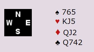 Hjerter ut fra nord, til konge som står. Ruter til knekt som også står. Hva nå?