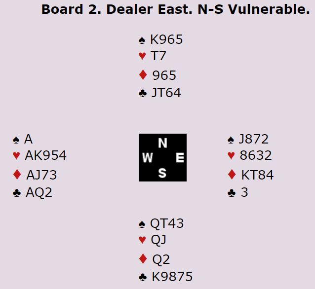 Øst åpner med 1NT. Det er lett å se at vest treffer veldig godt hvis han melder Stayman, det er ni stikk i hjerterkontrakt. Men om grandåpneren ikke har firekorts major kan det godt være slik at de heller burde spilt 1NT. Mange steder gikk det pass rundt på 1NT, og syd spilte ut liten kløver.