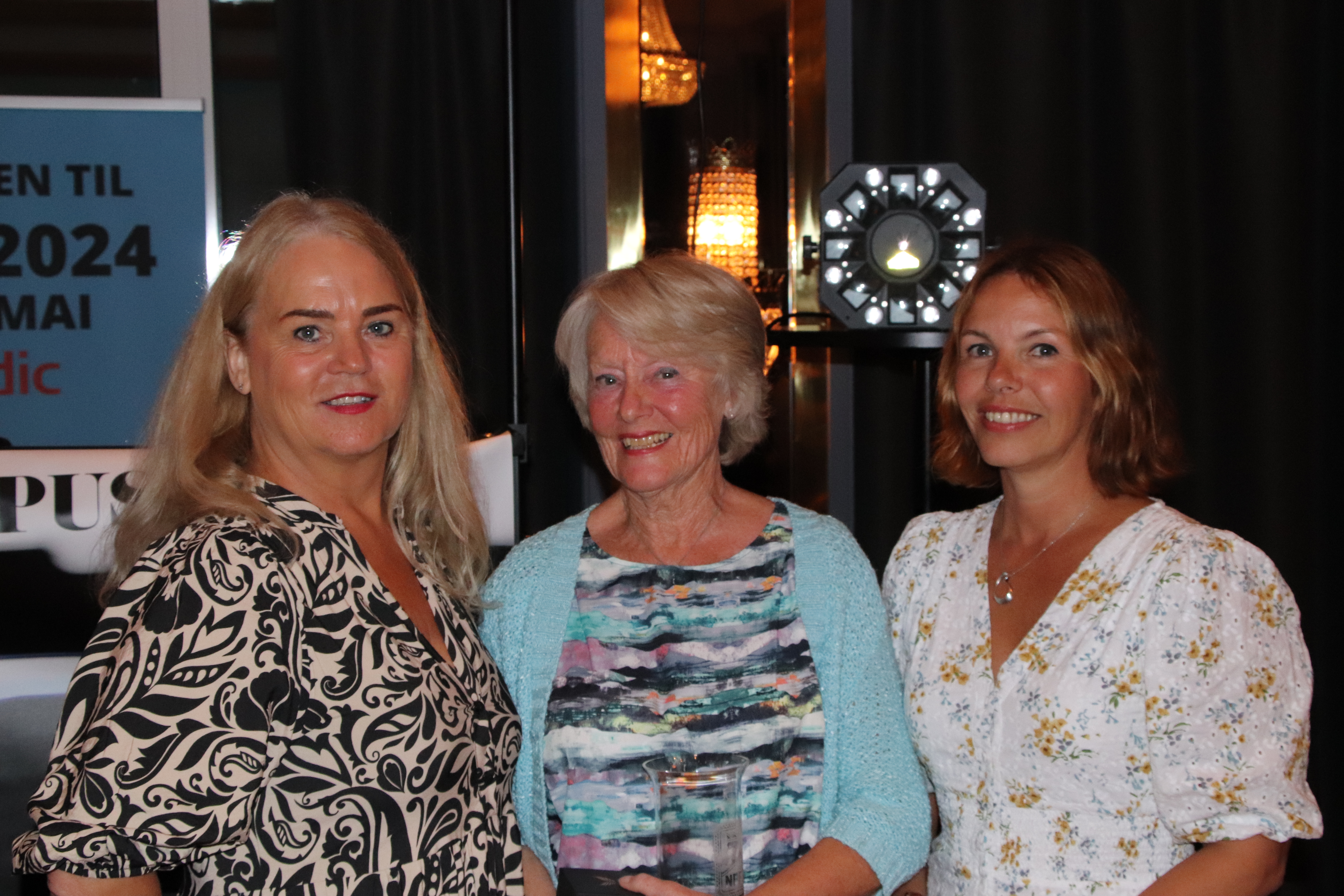 (Lillian Lindberg i midten flankert av president Åse Langeland (t.v.) og styremedlem Tonje Brogeland. Foto: NBF)