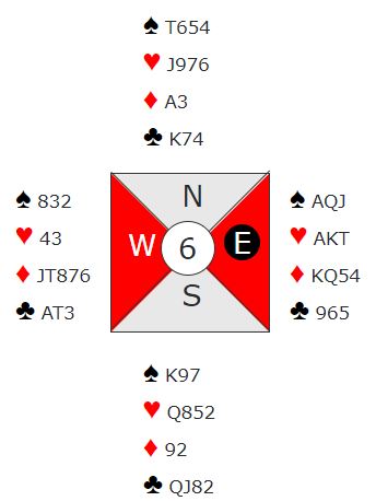 Med hjerter ut til knekten og honnør, og hjerter tilbake idet nord er inne på ruteresset har spillefører kun 1+2+4+1 = 8 stikk. Men siden hjerteren sitter 4-4 får forsvaret kun to motspillstikk i den fargen. Idet spillefører tar sparfinessen som han nesten må prøve - det er jo ti enkle stikk om nord har spar konge - ryker den finessen, men forsvaret har ikke nok stikk til å få tak i beten med ett i spar, to i hjerter og ruter ess. Om spillefører prøver hjerter 10 i andre hjerterrunde har forsvaret en bitte liten sjanse, men da må syd skifte til kløver idet han vinner stikk for hjerter dame - ikke lett.