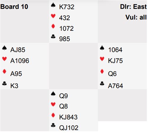 Her er spilleplanen som gir tolv stikk, og det skjedde kun ved ett bord, 100 % score i det feltet: