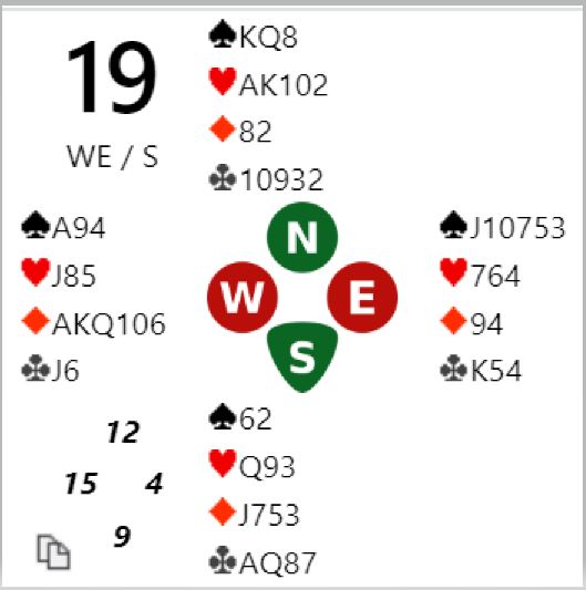 Etter spar ut til honnør hos vest ved det andre bordet var ruter konge fortsatt gardert. Nå spilte det ingerolle om det ble en trumftaper, spillefører fikk kastet ruter på kløverfargen uansett. Det ble ti stikk ved det bordet. En nokså tilfeldig utvikling førte altså til utgangsving i Studentens disfavør, 12 IMP, akkurat den marginen Irland vant kampen med.