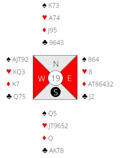 I ruterkontrakt er det åtte eller ni stikk, alt etter om man tipper trumfen riktig med kongen og ruter til tieren, eller om man satser på å toppe fargen. Det er et såkalt begrenset valg idet kongen spilles og en honnør kommer på bak A-10. Den teorien tilsier finesse andre gangen, men man kan jo aldri vite sikkert. Syd som åpnet kan godt ha startet med Q-J dobbel.