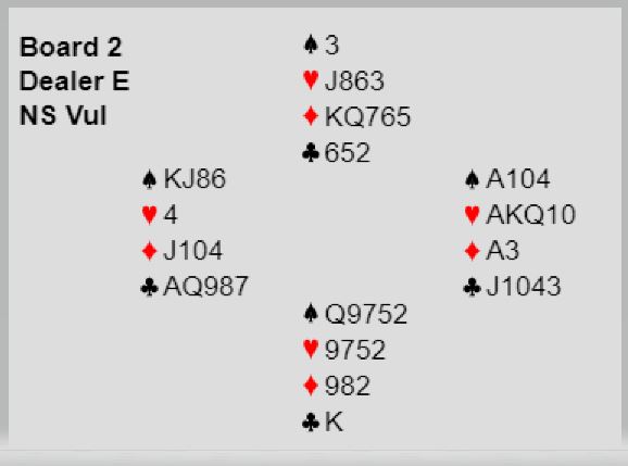 Det startet friskt. Allerede i spill 2 var det mulig slem på gang med disse kortene, og begge lag meldte godt: