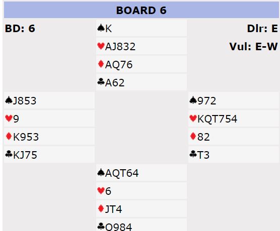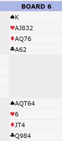 Ikke vet jeg. Syd sa imidlertid at hvis han hadde visst at øst ikke kunne ha noen minorkonge fordi han har K-Q i hjerter (5 poeng) så ville han spilt kløver til nieren etter å ha tatt for trumfkongen. Da vil vest vært innspilt, sa han. Er det riktig?