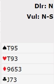 Ja, spar skal altså ikke ut så det blir kløver eller ruter. Øst sendte uten særlig mye betenkning i vei en ruter. Slik så hele spillet ut: