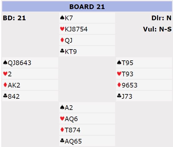 Spillet kostet 13 IMP siden N/S ved det andre bordet spilte utgang med tolv stikk. Heldigvis kostet ikke spillet avansement til finalen, men det gjorde det litt vel spennende.