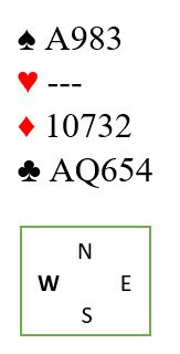 Terje Aa meldte 6 ruter. Øst doblet og det gikk pass rundt. Slik så hele spillet ut: