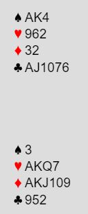 Vel, for oss etterpåkloke er det altså så lett å se at her burde det blitt meldt en storeslem som er nedlegg. Men idet motparten åpner meldingene på tre-trinnet eller høyere, eller de sperrer brutalt på en annen måte underveis bør man kanskje ikke være så misfornøyd om man brenner en storeslem. Kanskje er det grunn til å være happy med å komme seg i lilleslem når en blir presset i meldingene. Og her viste det seg å være nok med lilleslem, i Vanderbilt-finalen! Og holder det med lilleslem der, så holder det som oftest med lilleslem de fleste steder!