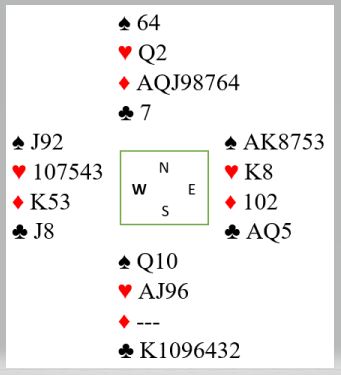 Utspillet var uheldig for forsvaret, men det ser unektelig ut til å måtte bli to rutertapere og en kløvertaper og dermed en bet likevel. Om syd spiller kløver ut er det også favør da det ikke blir noen kløvertaper (den tredje kløveren kan stjeles). Men da blir det normalt to hjertertapere og to rutertapere etterpå, også en bet.