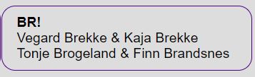 Kontrakten 5 hjerter doblet bør nok betes, men motspillet var ikke full klaff. Så far og datter Brekke noterte +850. Sammen med lagkameratenes meldt og vunnet utgang i den andre retningen ga spillet 15 IMP til BR!.