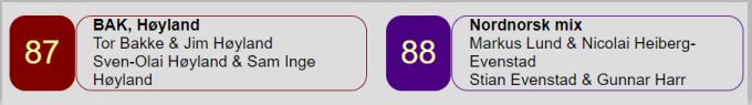 På tredjeplass fulgte Martinus og Norman Birkeund og på fjerde plassen kom Leif Riksvold og Frank Bogen.
