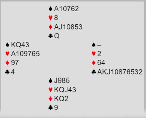 Nord for BAK svarte 1 spar, mens Nordnorsk mix sin spiller sa 2 ruter. Øst hadde en uvanlig hånd, og over 2 ruter kom 5 kløver derfra! Hva nå?