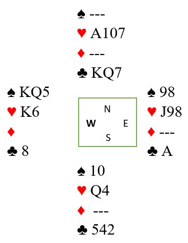 Hva om vest holder fire spar, kongen dobbel i hjerter og kvitter seg med kløver 8?