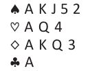 Det første er sakset fra IBPA-bulletinen, og det er Barry Rigal som publiserte det. Her har syd mest sannsynlig fått utlevert årets best hånd så langt. (Giver syd, ingen i sonen)