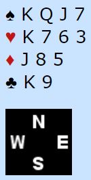Denne gangen var å satse på 3NT feil – i teorien. Vest har to hjerterstoppere. Ruterutspill, eller ruter i skift før begge vests stoppere er tatt bort gjør at det blir færre stikk i grand enn i hjerterkontrakt,