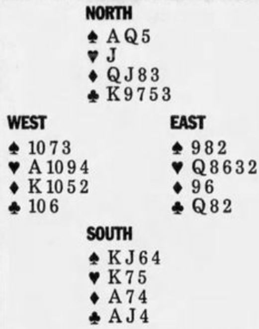 Den uerfarne spilleren tok lynraskt fem kløverstikk, fire sparstikk, hjerter konge og ruter ess - to overstikk i 3NT. Etter at eksperten hadde toppet kløveren og tatt ruterfinessen var kontrakten bet ved det bordet, svingspill inn til den spilleren som ikke så den i teorien beste spilleplanen.
