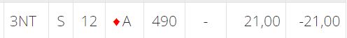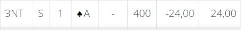 Tolv stikk i motspill i stedet for tolv stikk til spillefører ble resultatet ved det bordet!