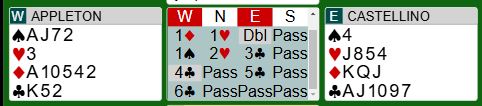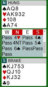 Men det var ikke bare det ene laget som bommet. Ikke lenge etter det ble en bet i den 6 spar-kontrakten var det andre laget i slem med disse Ø/V-kortene: