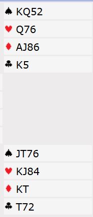 Her er et spill fra en parturnering i helgen. Du kan prøve deg selv, og husk det er parturnering. Så selv om du er i en trygg delkontrakt svinger det mange poeng om du ikke får fatt i maks med stikk.