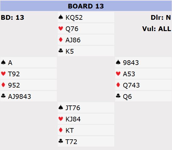 De som spilte slik og noterte +140 til N/S fikk litt under middels.