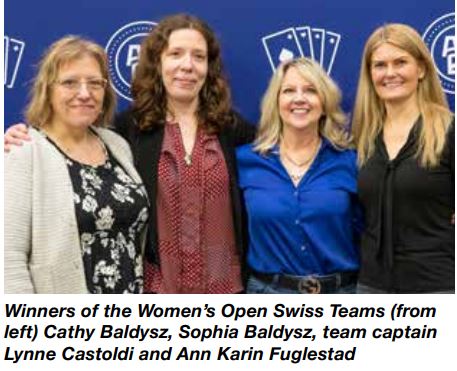 Da det amerikanske vårmesterskapet ble avsluttet søndag var Ann Karin Fuglestad på vinnerlaget i Women's Swiss Teams. Hun spilte med Lynne Castoldi fra California på lag med polske mor og datter Cathy og Sohpia Baldysh (bor i USA).