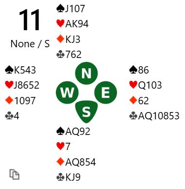 Merk at alt det spillefører gjorde i dette spillet ville ganske ofte vært til ingen nytte, for normalt ville jo kløverfargen vært fordelt 2-1 sånn at absolutt alle vinner tolv stikk. Men om kløveren sitter 2-1 og det ved mange bord er claim tolv stikk etter noen få sekunder, så så sitter kløveren 2-1 litt senere også.