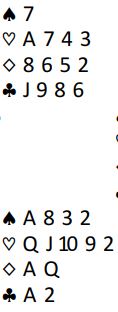 Ved det ene bordet i den nevnte lagkampen dengte spillefører ned kløver ess etter å ha vunnet det første stikket på hånden. Da kunne ikke kontrakten vinnes lenger siden det satt slik:
