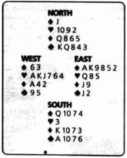 Men ikke her. For hvis det tenkes sånn og trumfen tas ut i tre runder blir det kun de seks trumfstikkene, to sparstikk og ett stikk for ruter ess – ni stikk totalt, en bet.