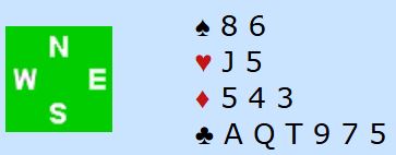 Utgangen 5 ruter er ikke så verst, den avhenger i praksis av at ruteren blir løst uten taper. Hva med 3NT? Det spørs litt hvordan meldingene har gått, men det er klart at i grandkontrakt med såpass tynn spar kan av og til motparten ta fem kjappe sparstikk med honnør fra vest som feller syds knekt, så spar gjennom nords Q-9. Så det spørs hvordan sparen er fordelt.