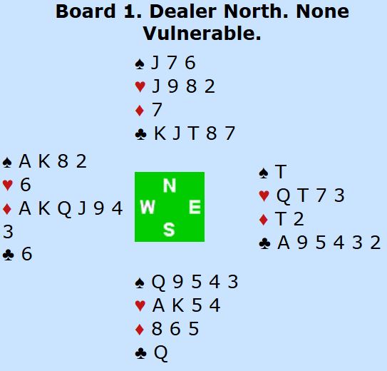 Fire av åtte spilleførere gikk bet i 4 spar, og ved ett bord ble det en bet i 4 hjerter som ikke kan vinnes – en taper i hver farge. Kun ved tre bord ble 4 spar vunnet.