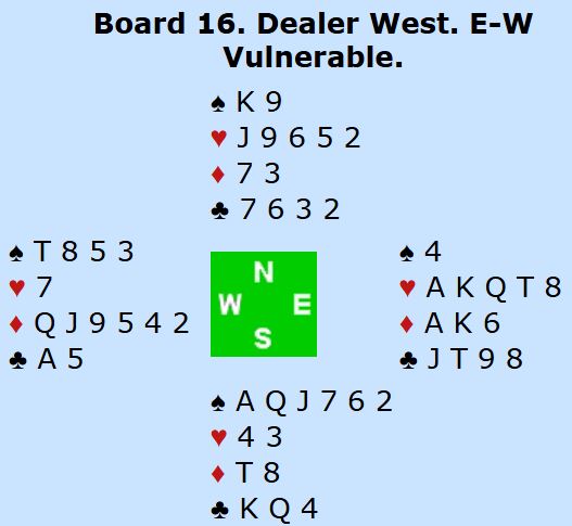 Det ble tre rutertapere, en bet. Problmet er å unngå tre rutertaperne i tillegg til at N/S må få for hjerter ess.